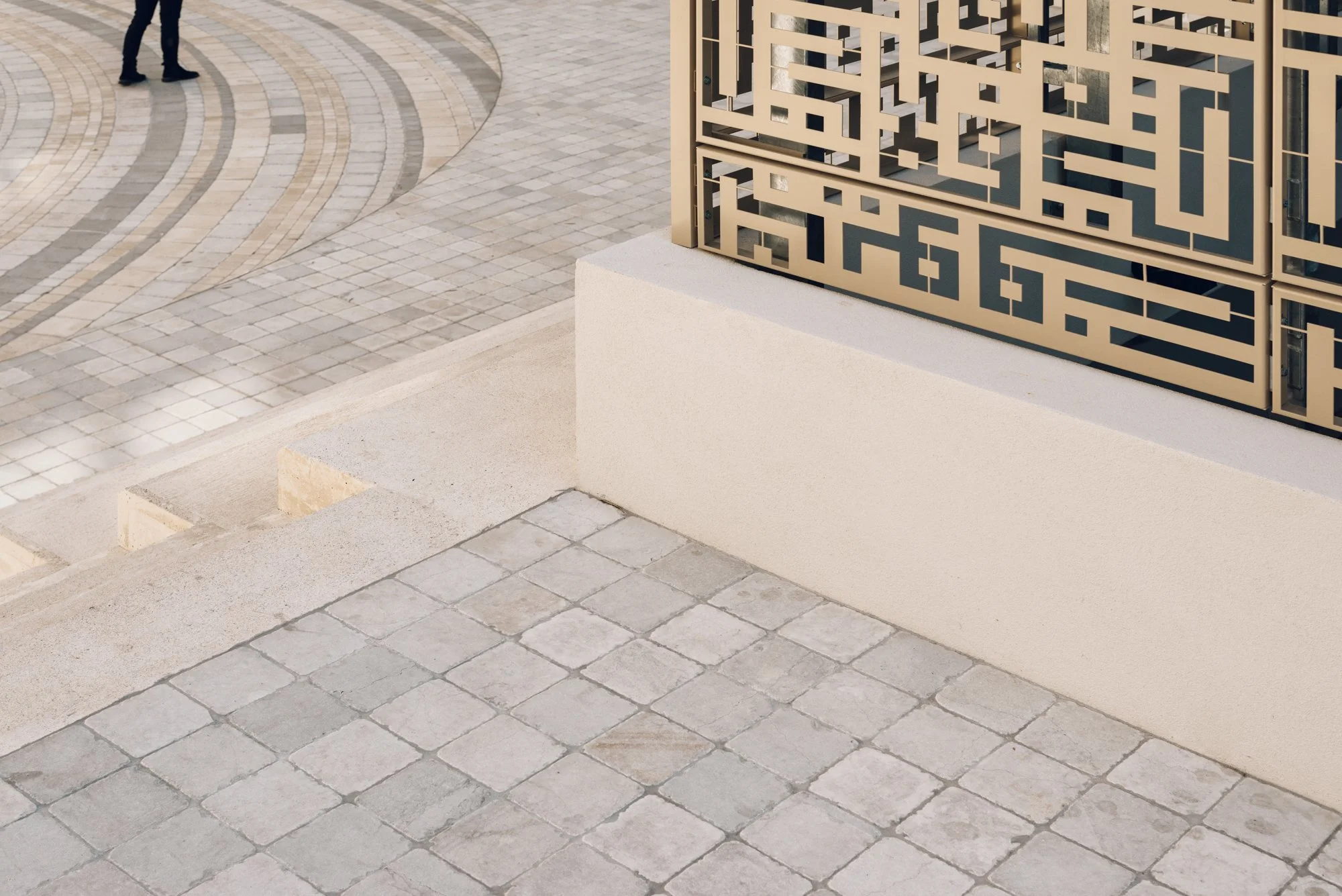 Notre projet de rénovation a été conçu et réalisé en collaboration avec une agence d’architecture basée à Tunis, ATELIER 13. Choisi pour la douceur de sa teinte, le revêtement extérieur en marbre de Thala se marie parfaitement avec la couleur des façades existantes pour une intégration harmonieuse au sein de la fondation. Une fontaine complète l’aménagement, située en face des gradins conçus pour accueillir les étudiants tout au long de l’année.