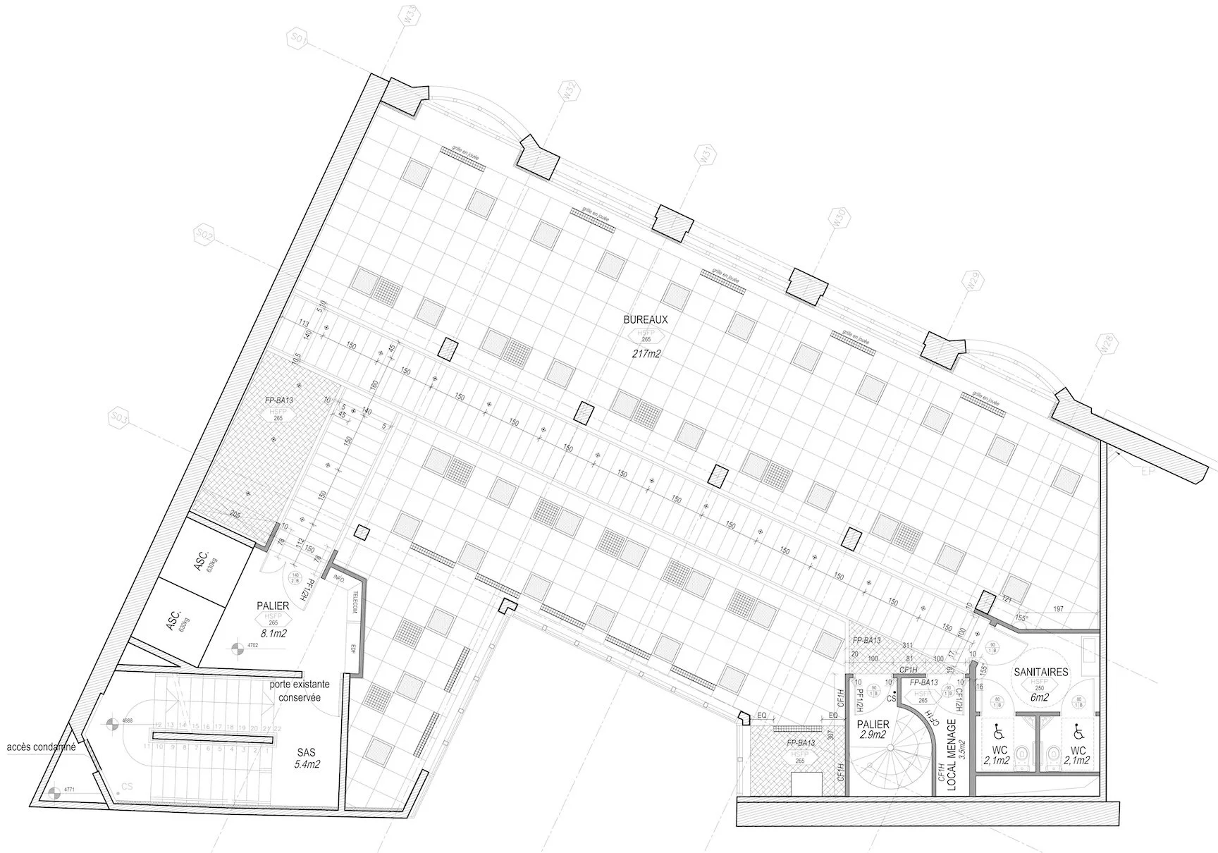 Notre projet concerne la réhabilitation des 2300 m² de bureaux, désormais livrés en open-space avec un plancher technique adapté. Ces espaces ont été mis aux normes, notamment en termes de sécurité incendie et d’accessibilité handicapés, en réponse à la densification des étages. Chaque détail a été pensé pour offrir un environnement moderne et conforme aux exigences contemporaines.