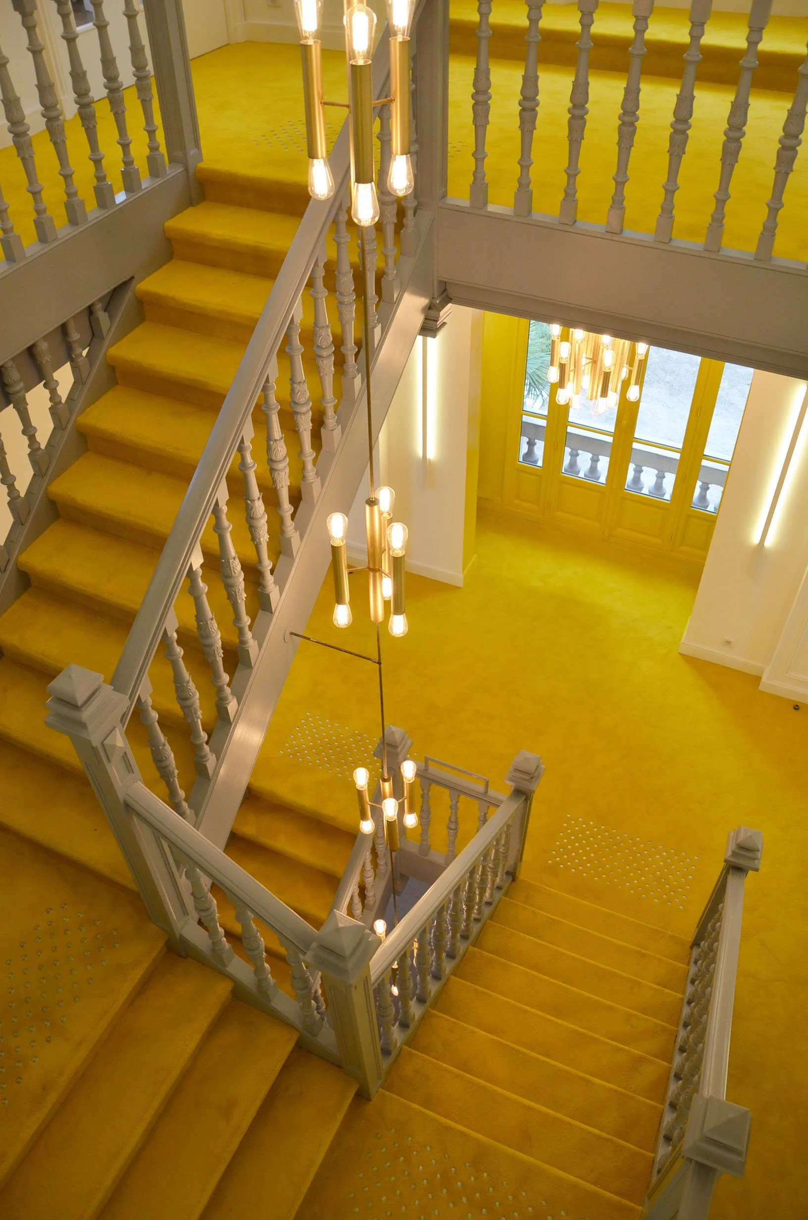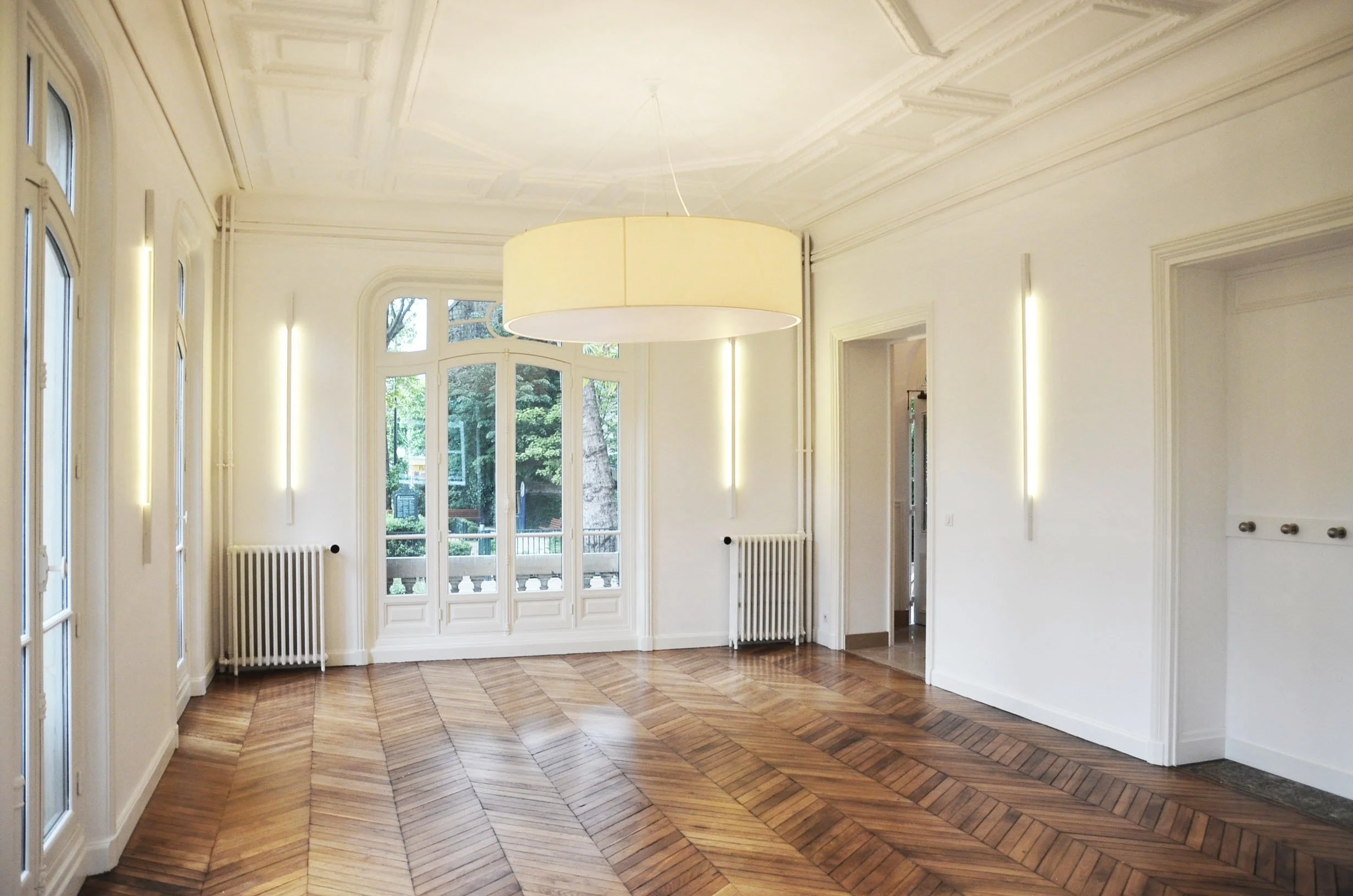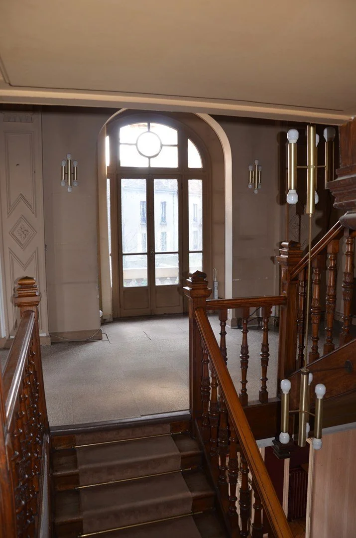 Notre projet de réhabilitation met l'accent sur la flexibilité des espaces, permettant une adaptation continue des locaux en fonction des besoins futurs. Pour garantir cette évolutivité, une attention particulière a été portée à l'intégration des réseaux techniques et à la conception de mobilier modulable. De plus, les performances thermiques du bâtiment ont été considérablement améliorées, notamment grâce au remplacement des menuiseries. Nous avons adopté une approche architecturale à la fois sobre et contemporaine, soulignant les volumes et les espaces réaménagés. Les matériaux sélectionnés reflètent notre engagement à respecter l’identité du bâtiment : le bois clair a été choisi pour le mobilier, tandis que des teintes lumineuses habillent les murs, mettant en valeur les détails architecturaux d'origine. Enfin, les menuiseries extérieures arborent des teintes assorties à la toiture en zinc, renforçant ainsi l'harmonie et la cohérence esthétique de la façade.